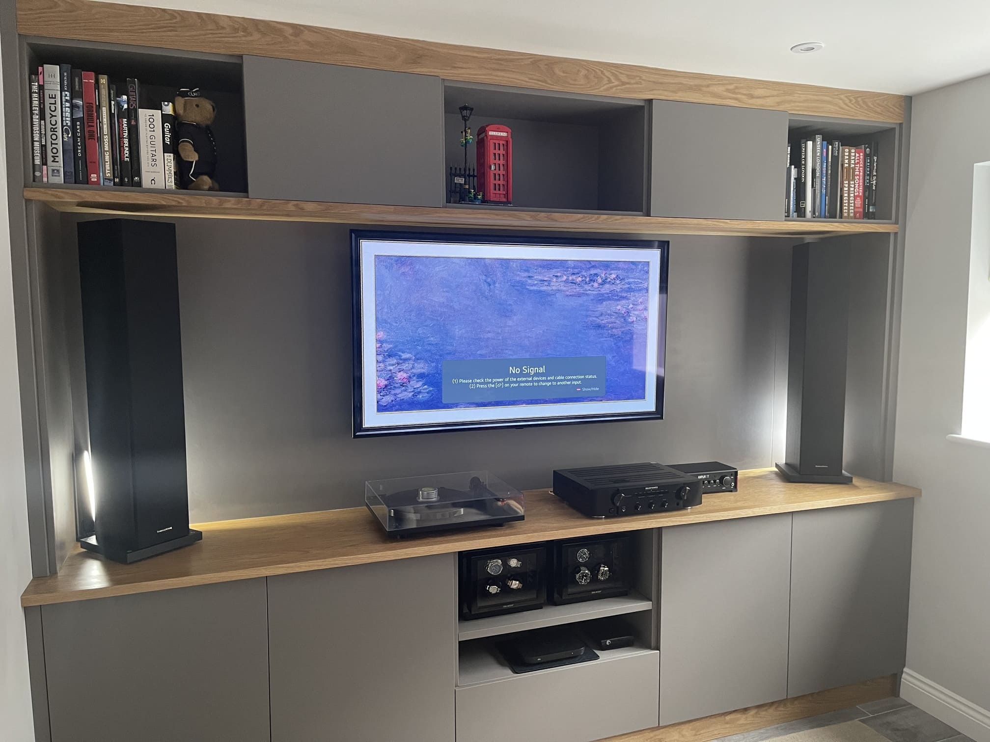 Technology should enhance your living space, not dominate it. Our bespoke media units elegantly house your entertainment systems while maintaining the warmth and character of your home. We create sophisticated solutions that hide unsightly cables, ventilate equipment properly, and provide accessible storage for devices and media.